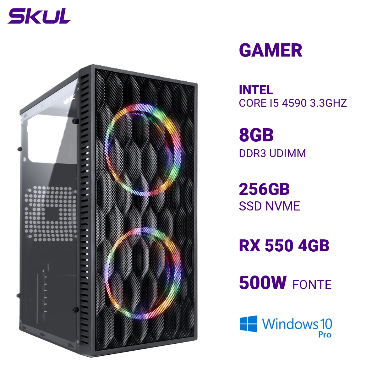 COMPUTADOR 5000 CORE I5 4590 3.3GHZ MEM 8GB DDR3 SSD 256GB NVME RX 550 4GB FONTE 500W WINDOWS 10 PRO – código:322663