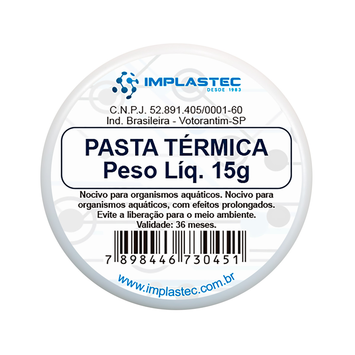Pasta Térmica de silicone Implastec é especialmente indicada para montagens onde se exige um perfeito acoplamento entre o semicondutor e o dissipador de calor;