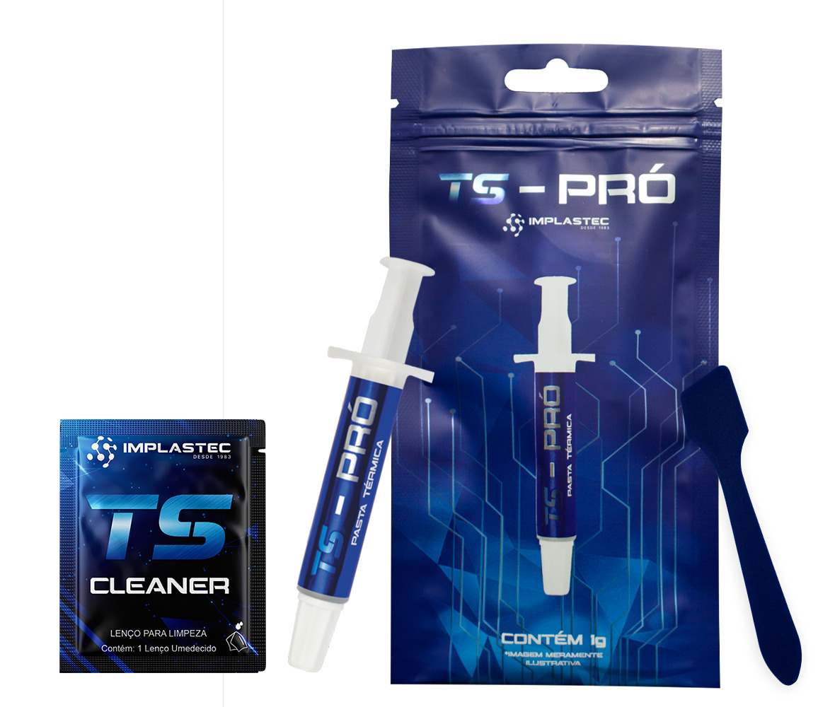 A Pasta Térmica TS – Pró da Implastec foi desenvolvida para atender a necessidade crescente de resfriamento em componentes eletrônicos devido a sua alta condutividade térmica, viscosidade adequada a aplicação, durabilidade e estabilidade. Tais características são possíveis devido à sua fórmula moderna que combina uma mistura de materiais com elevada condutividade térmica juntamente com o fluido de silicone especial, garantindo assim um desempenho excepciona nas mais variadas aplicações.