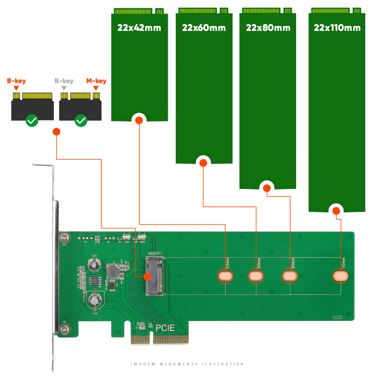 PLACA PCI-E PARA SSD M.2 COM NVME – PCI-E X4 – PM2-PCIE – código:65425